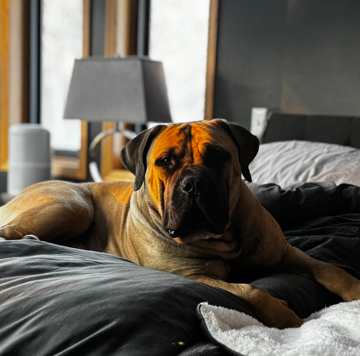 Ever have a dog change your life? That’s what Kobe did for us. Our priority was a puppy with a goofy, fun loving temperament and Mae Boerboels delivered as promised. Kobe inherited excellent genetics from the pairing of Mae Edwin (WS73688803) and Mae Carmela (WS74853002). It felt like we finally had the missing piece, a large Working Dog for our 7-acre property.